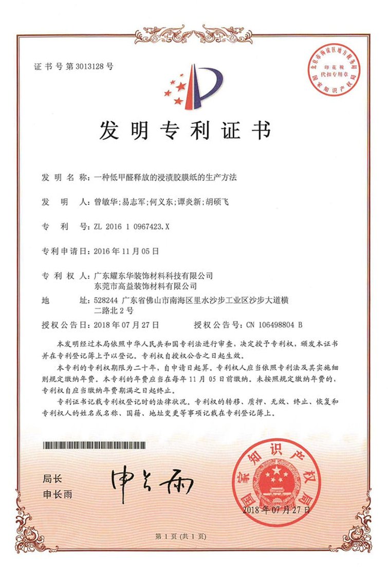 一種低甲醛釋放的浸漬膠膜紙的生產(chǎn)方法發(fā)明專利