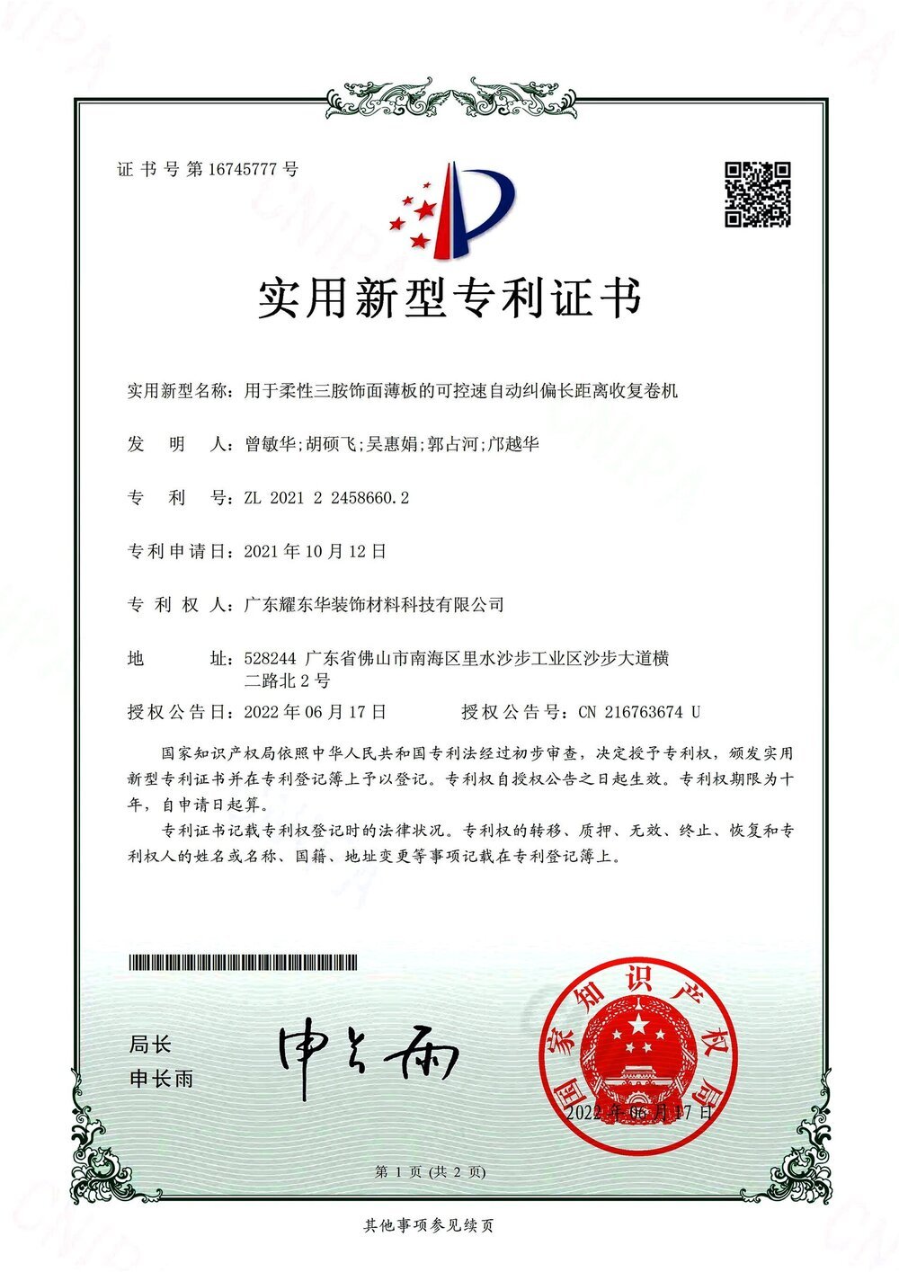 用于柔性三胺飾面薄板的可控速自動糾偏長距離收復卷機
