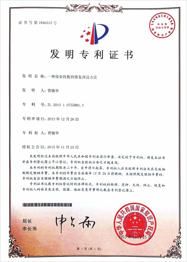 一種商業(yè)掛板的修復(fù)封邊方法發(fā)明專利