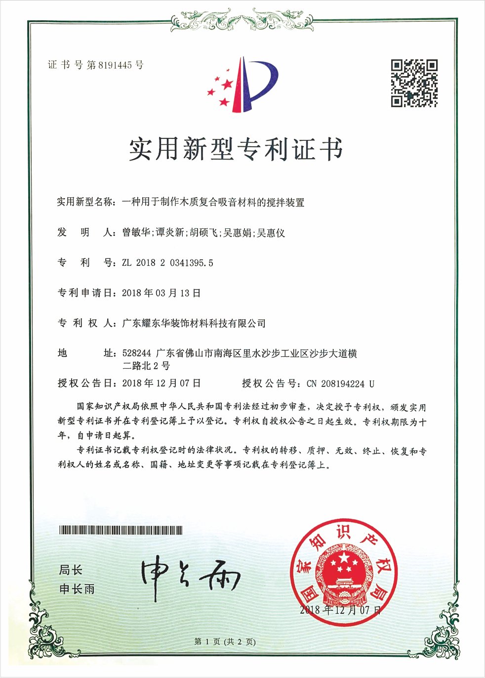 一種用于制作木質(zhì)符合吸音材料的攪拌裝置專利證書