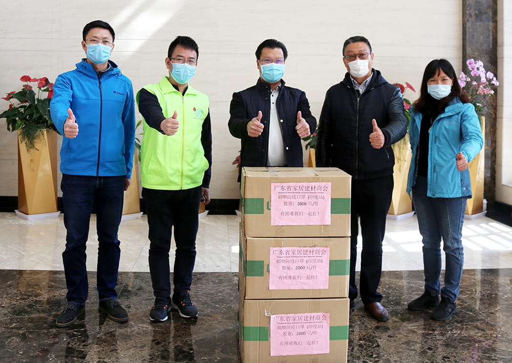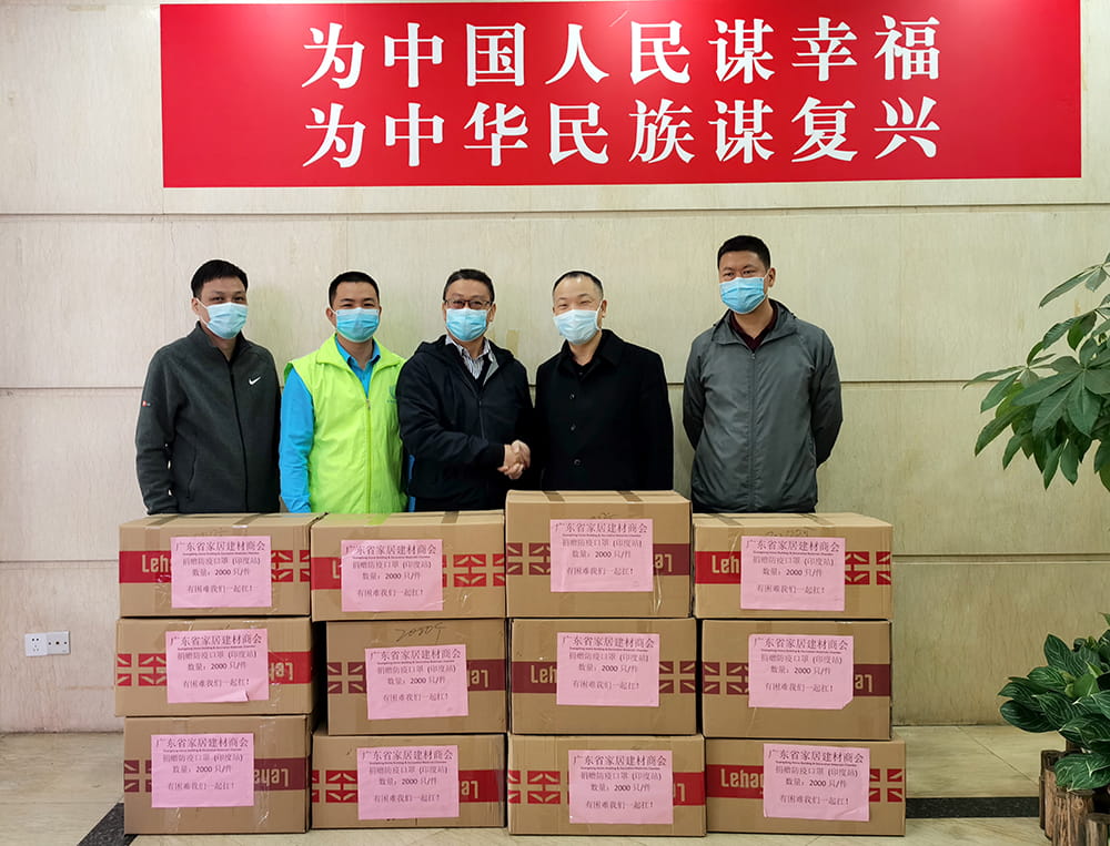 2020年春節(jié)期間,武漢新肺疫情爆發(fā),防疫醫(yī)療物資緊缺,全國各行業(yè)紛紛施以援手。廣東省家居建材商會在商會會長曹宇勇、黨支部書記林紹武、監(jiān)事長黃旭光等決策委員會的領導和組織下,自2020年1月28日起,發(fā)動廣大會員單位,聯(lián)合全球多方力量,籌集防疫物資,支援這場抗災戰(zhàn)役。