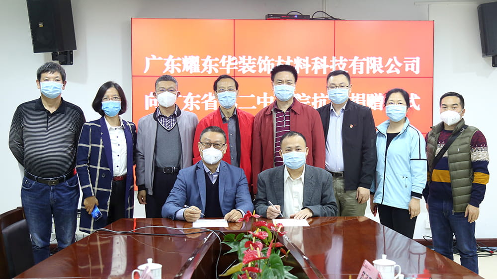 2020年3月6日下午,廣東耀東華裝飾材料科技有限公司向廣東省第二中醫(yī)院捐贈一批“紅棉花”牌抗菌防霉飾面刨花板定制的家具,用于改善醫(yī)院呼吸科醫(yī)護人員及病人的環(huán)境,共同抗擊新肺疫情,捐贈儀式在廣東省第二中醫(yī)院舉行。