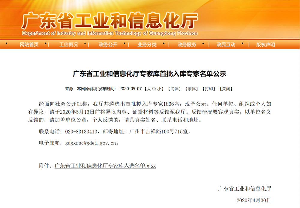 耀東華公司曾敏華董事長首批入庫“廣東省工業(yè)和信息化廳專家?guī)臁?/h5>