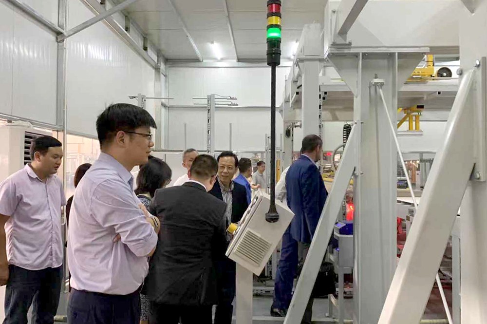 ↑耀東華集團(tuán)總經(jīng)理羅山鷹、副總經(jīng)理兼制造總監(jiān)鄺越華,帶領(lǐng)愛(ài)格集團(tuán)CFO及發(fā)言人Thomas Lessing一行,參觀了無(wú)錫制造基地生產(chǎn)線。