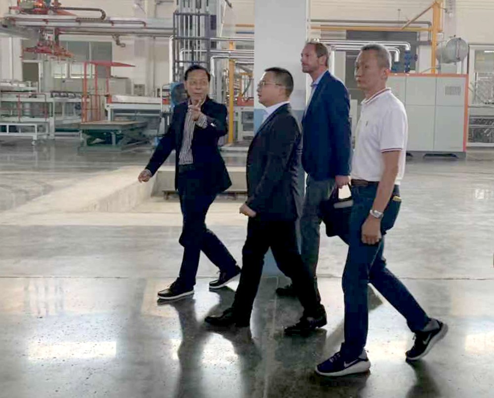 2019年10月10日,世界知名板材企業(yè)愛(ài)格集團(tuán)CFO及發(fā)言人Thomas Lessing、戰(zhàn)略發(fā)展總監(jiān)Reinhard H?tti、技術(shù)中心總監(jiān)Andreas Schrefl、愛(ài)格中國(guó)區(qū)總經(jīng)理陳艷敏、溫康納常州公司總經(jīng)理賀旭峰一行參觀訪問(wèn)了耀東華集團(tuán)無(wú)錫制造基地。耀東華集團(tuán)總經(jīng)理羅山鷹、副總經(jīng)理兼制造總監(jiān)鄺越華率無(wú)錫團(tuán)隊(duì)熱情接待。