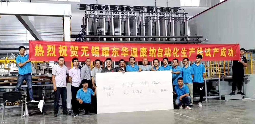 2019年9月22日,耀東華無(wú)錫制造基地引進(jìn)了德國(guó)溫康納雙面同步對(duì)紋自動(dòng)壓貼生產(chǎn)線,并成功試產(chǎn)。