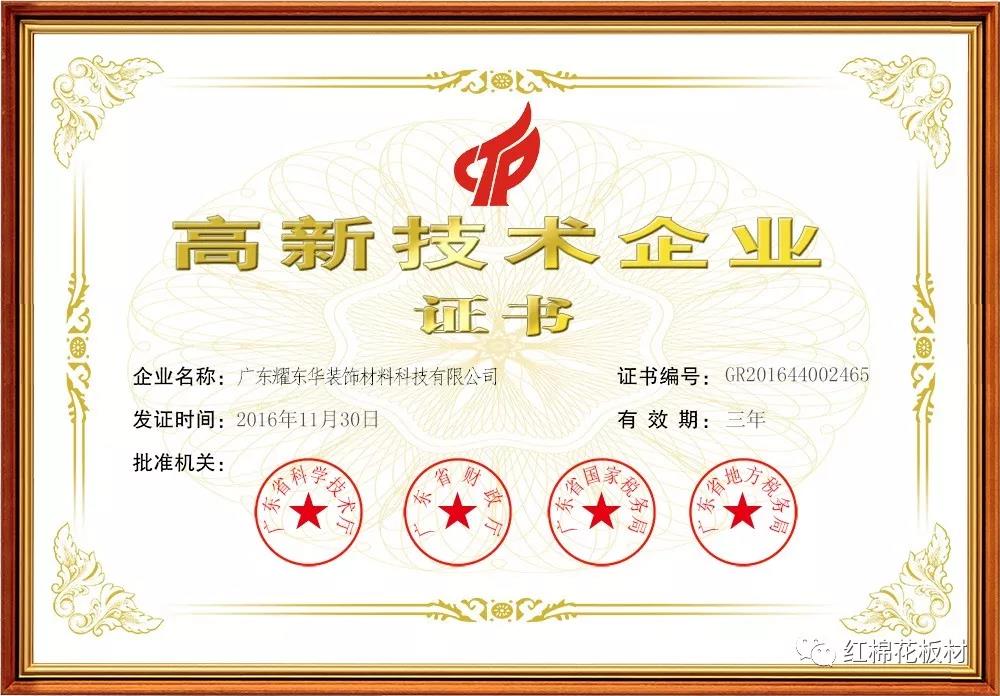 紅棉花內(nèi)置導(dǎo)體飾面人造板獲得ZL 2016 2 0745633.X《內(nèi)置電路一體化智能板材》實(shí)用新型專利授權(quán);2017年,“紅棉花”牌內(nèi)置導(dǎo)體飾面人造板的國內(nèi)外科技查新報(bào)告結(jié)果顯示,紅棉花智能板產(chǎn)品為國內(nèi)外首創(chuàng);2017年6月4日,在中國林產(chǎn)工業(yè)協(xié)會(huì)組織的新產(chǎn)品鑒定會(huì)議上,該產(chǎn)品被評(píng)定為達(dá)到國際先進(jìn)水平。2017年9月,“紅棉花內(nèi)置導(dǎo)體飾面人造板”獲得第四屆中國林業(yè)產(chǎn)業(yè)創(chuàng)新(人造板業(yè))二等獎(jiǎng),該獎(jiǎng)項(xiàng)是國家林業(yè)局九個(gè)評(píng)比表彰項(xiàng)目中的一個(gè)重要項(xiàng)目,是國務(wù)院核準(zhǔn)的部級(jí)獎(jiǎng)項(xiàng),也是林業(yè)行業(yè)科技進(jìn)步、產(chǎn)品創(chuàng)新方面的最高獎(jiǎng)項(xiàng)。