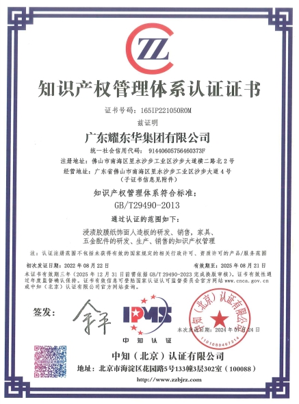 知識(shí)產(chǎn)權(quán)管理體系認(rèn)證證書